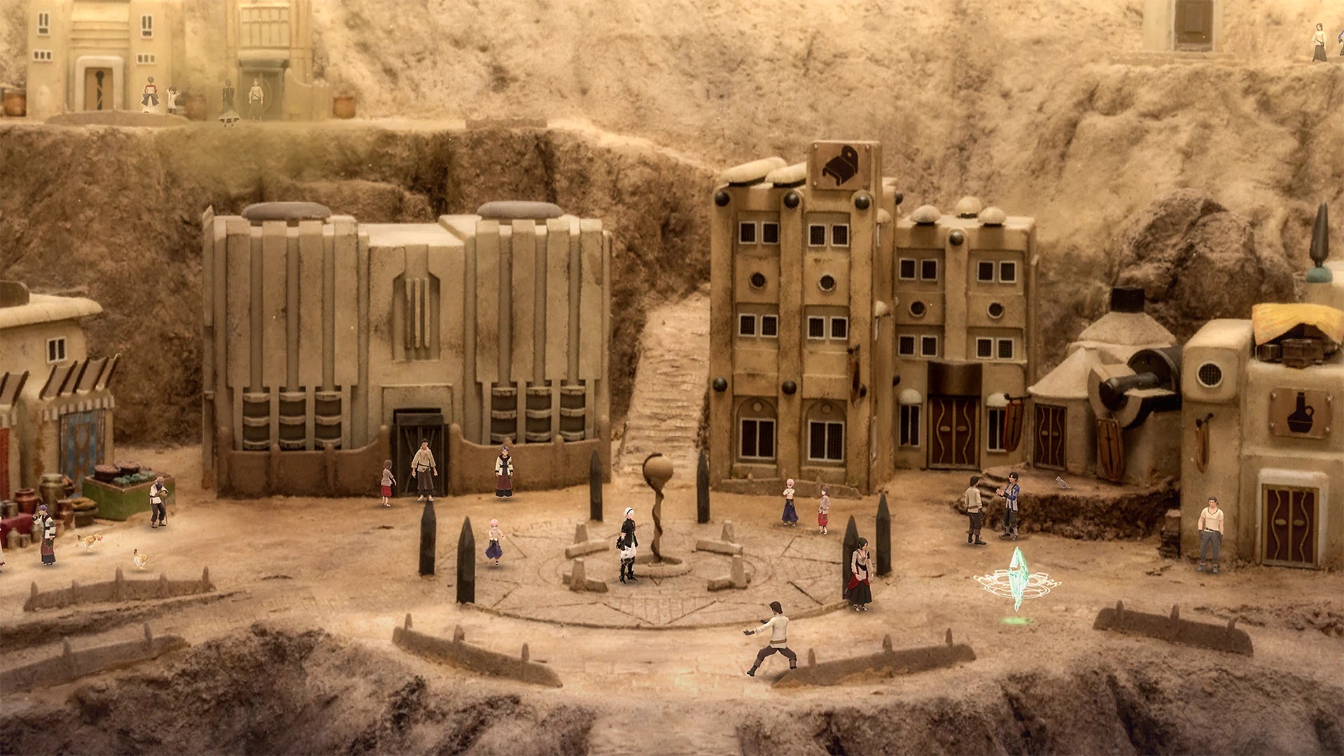 The world shifts, and ebbs with your movements, and the loading screens take you from one diorama to the next. Exploring them is like moving imaginary toys across a world you tower over, akin to a DM. In some ways, it is similar to an AR game, where digital assets are layered atop the real world—in this case, miniature sets. Over 150 dioramas were made, and in a comment made to IGN, Sakaguchi described the process as thus: