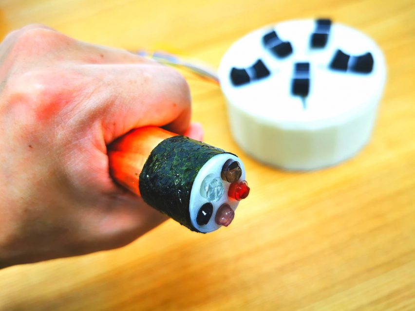 “When we wrapped the device in dried seaweed, presenting taste of salty and sour with seaweed scent causes illusion of actually eating sushi.”