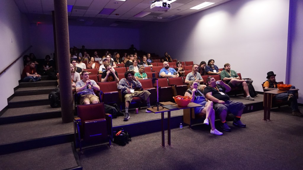 Everyone gathered in the incredible auditorium and listened with bated breath to Kunal Patel’s introduction. With all of the industry-centered events Indienomicon hosts, it’s nice to see something more for fun and entertainment—specifically, themed entertainment.