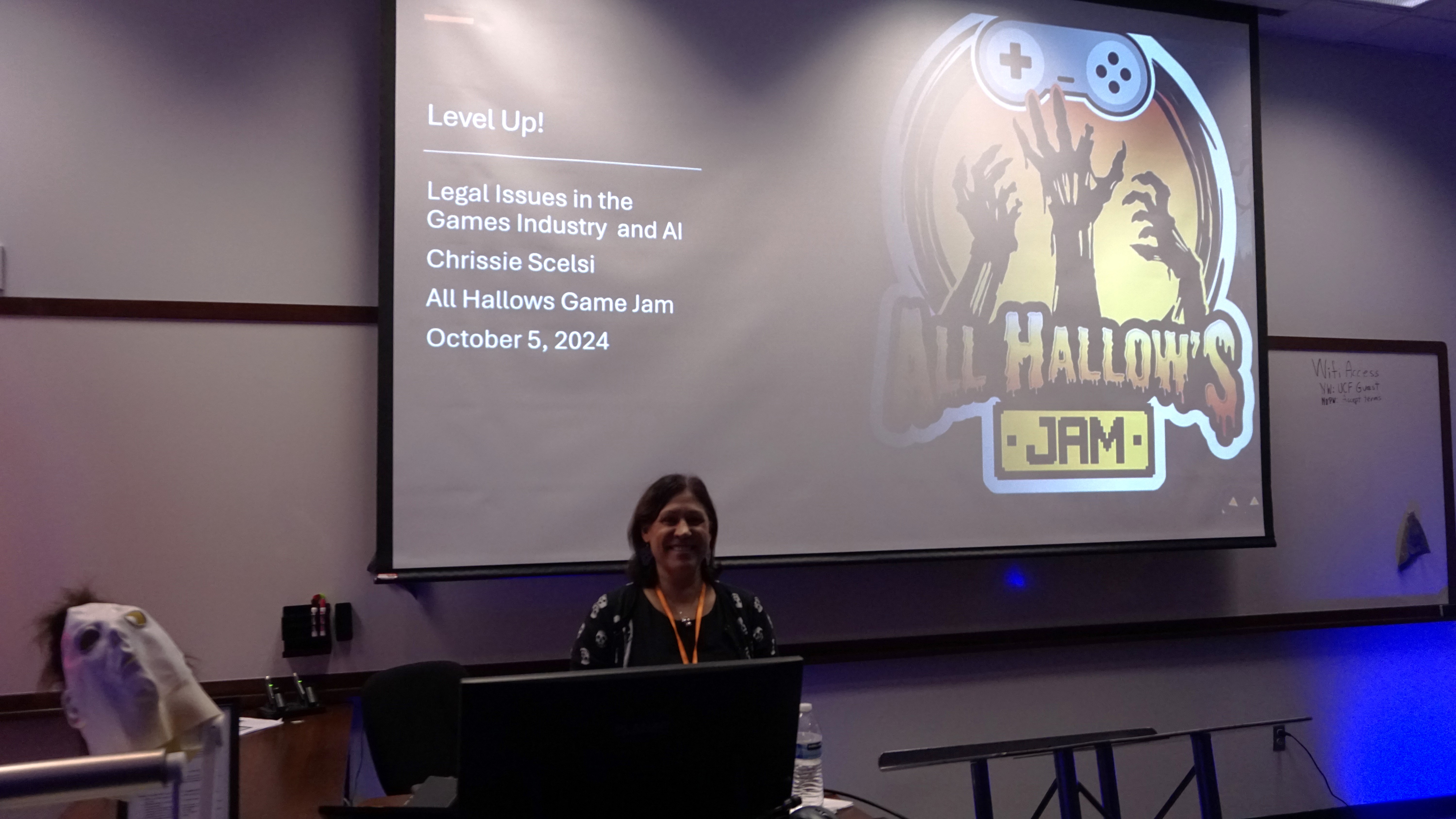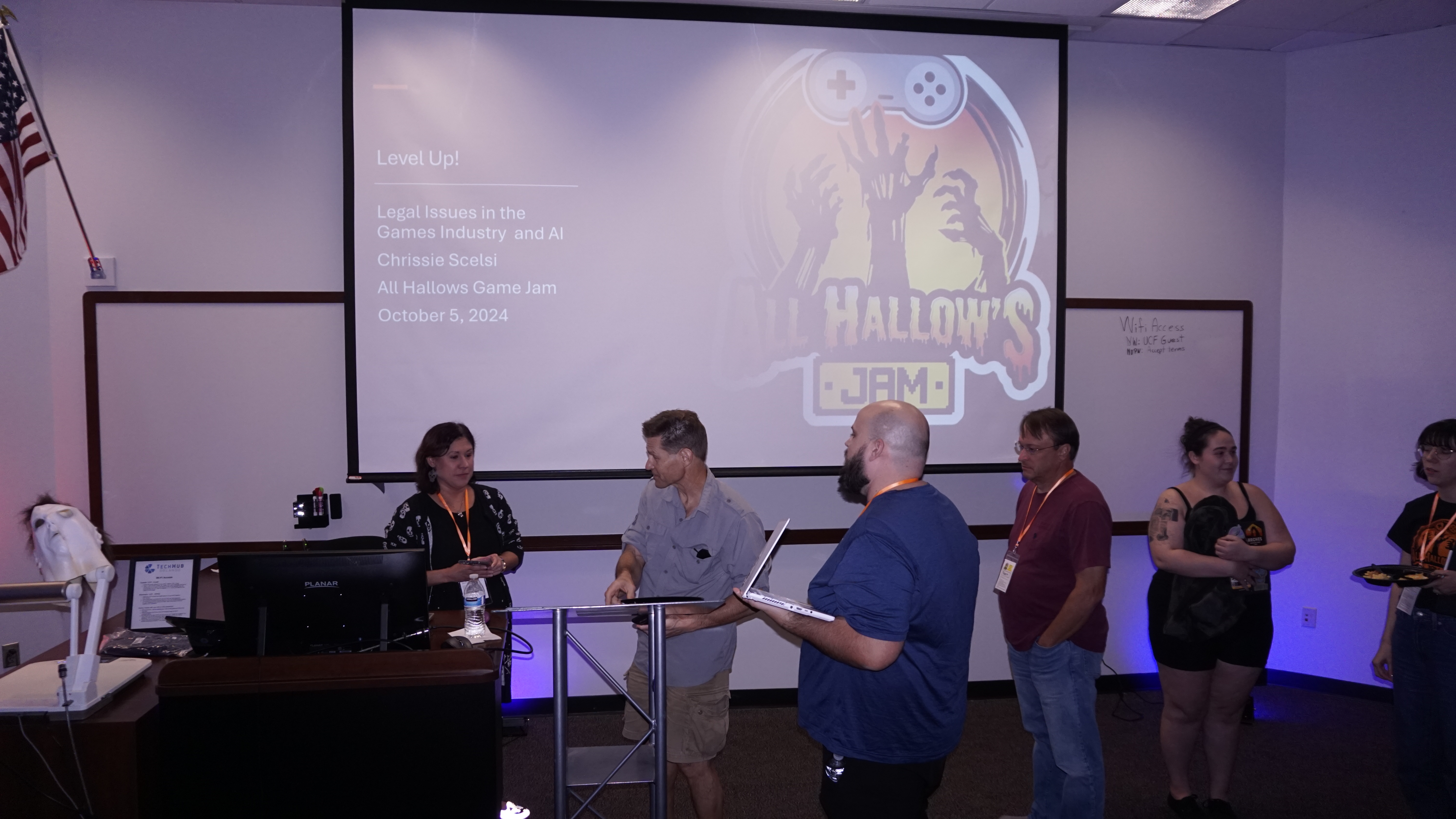 As I mentioned above, Orlando Tech News asked me to provide coverage for them. Orlando Tech News is an independent news publication founded by Marco Santana that covers the tech and gaming scene in the greater Orlando area. For my first official assignment, I was asked to summarize the day in 200 words, take pictures, and interview five contestants. Thankfully, I arrived just in time for copyright attorney Chrissie Scelsi’s seminar on the legality of games and AI.