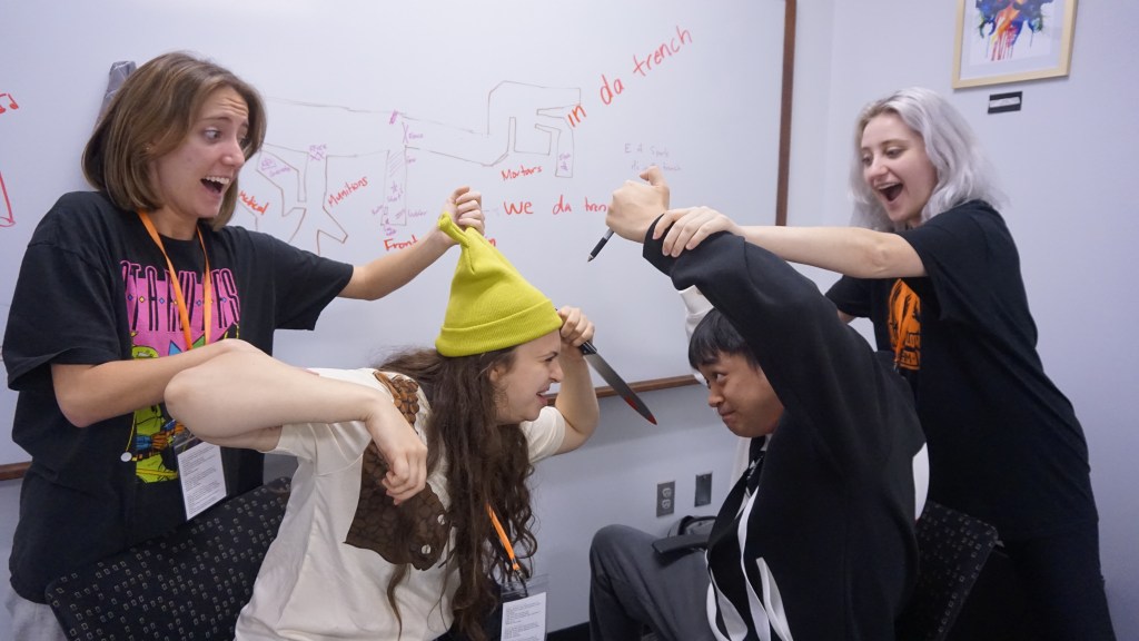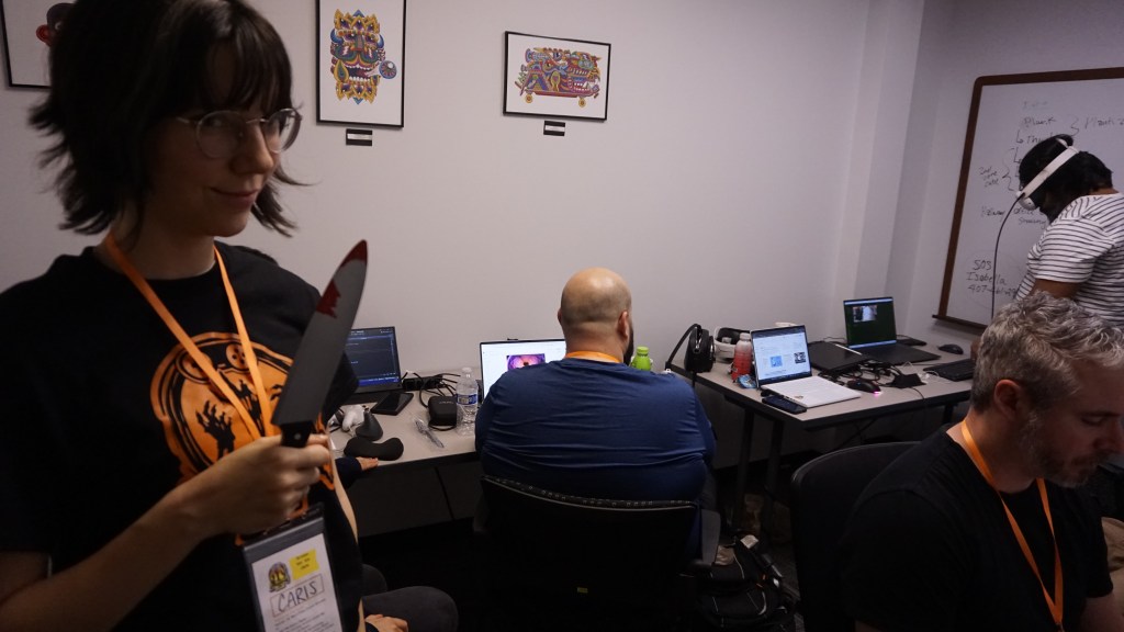 What has changed, however, is attendance. More than 30 applicants have applied, seeking glory and riches. I recognize most of them from September’s MeGa Health Jam. I also learned that the matriarch of OMG Labs, Isabella Johnston, invited several high school students to compete. I was pretty surprised to see one of the speakers of that jam, local celebrity Caris Baker, competing. She’s a senior tech artist for Capgemini Engineering and has made art for local indie game studio Astro Crow Games.